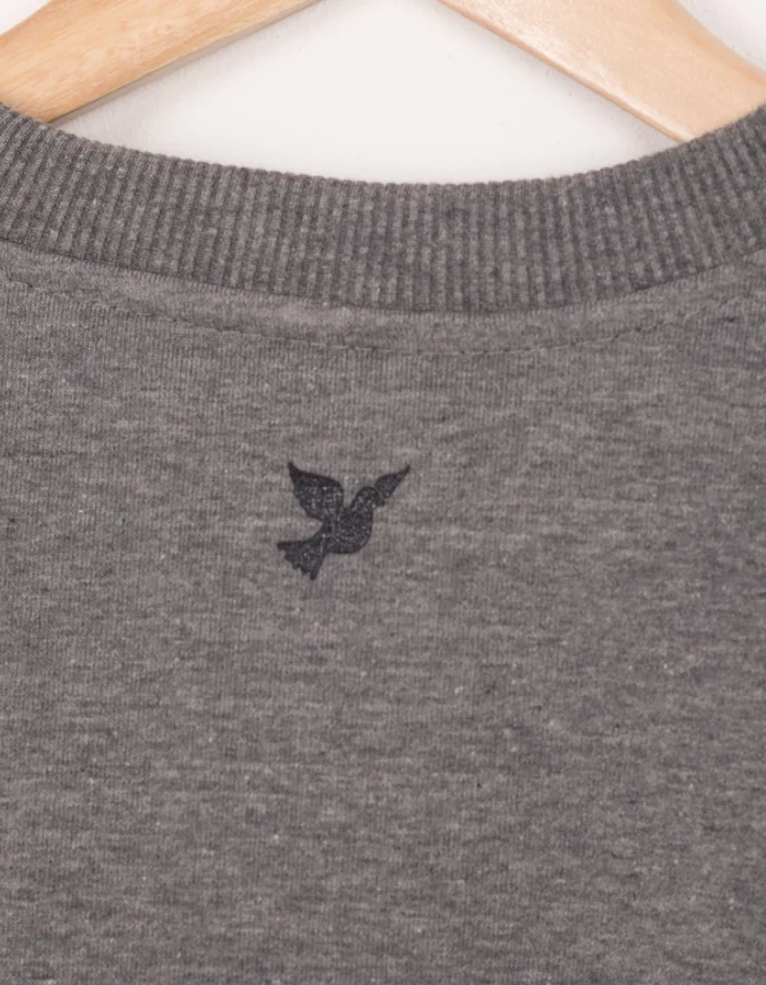- Szara bluza crewneck, bez kaptura.